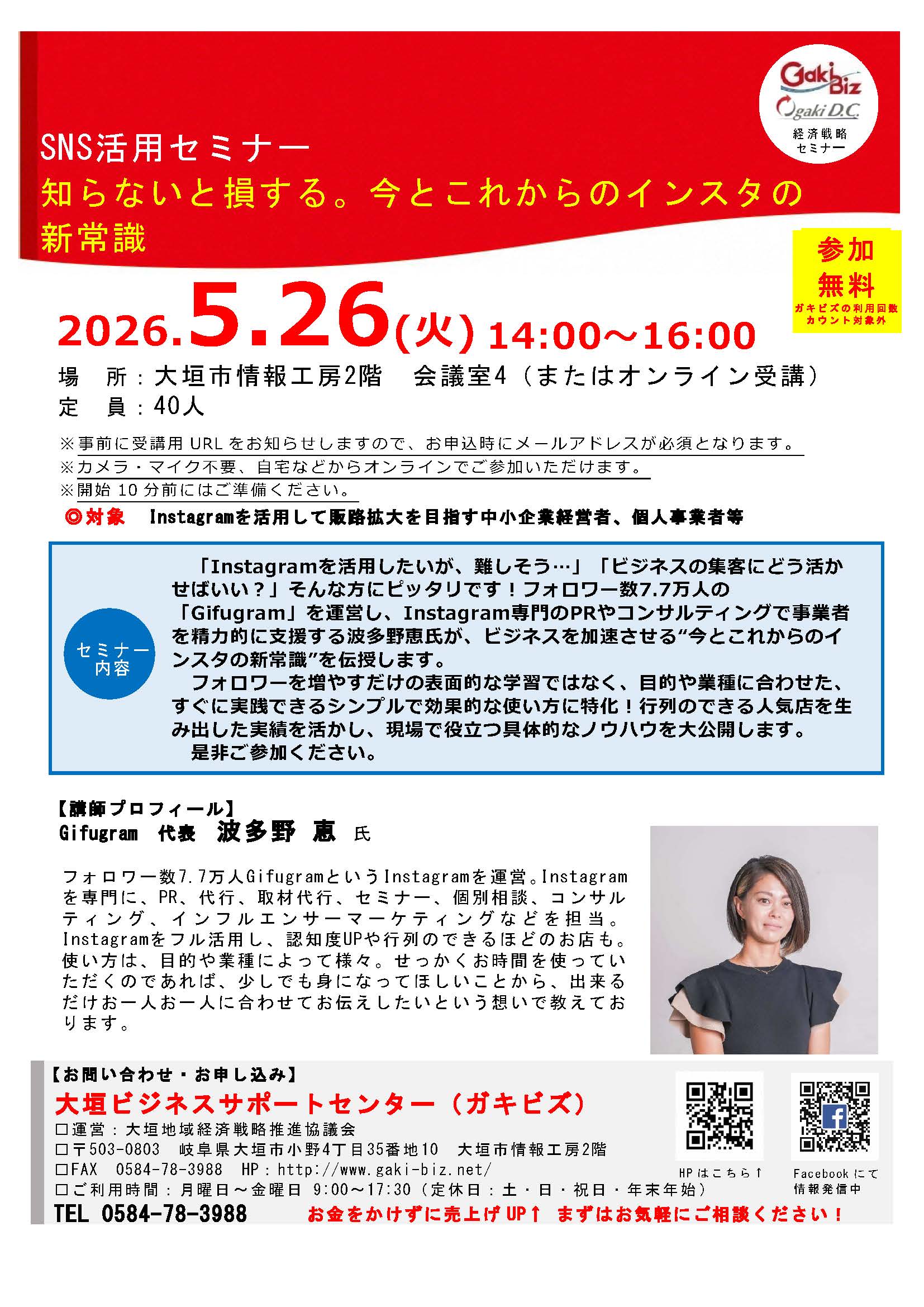 - 4月17日(金)【本巣市・大野町】「経営相談会」を実施します。